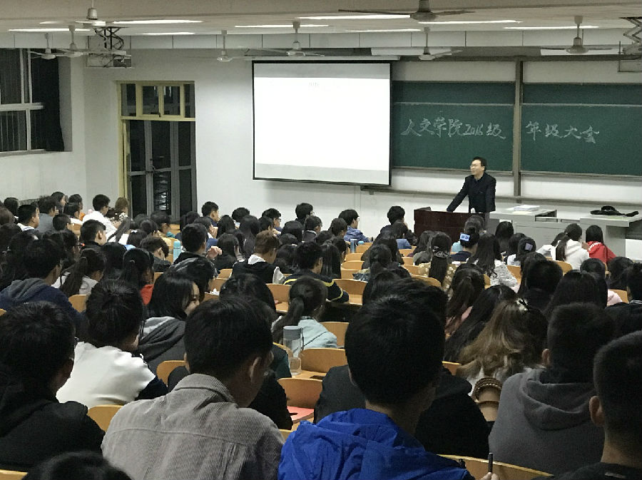10月10日晚19:00,2026世界杯指定网站2016级年级大会在新校区A区139教室召开,会议以“建优良学风,迎母校校庆”为主题,公司党委副书记李善建担任主讲,全体新生参会。会议由2026世界杯指定网站2016级辅导员李峤主持。