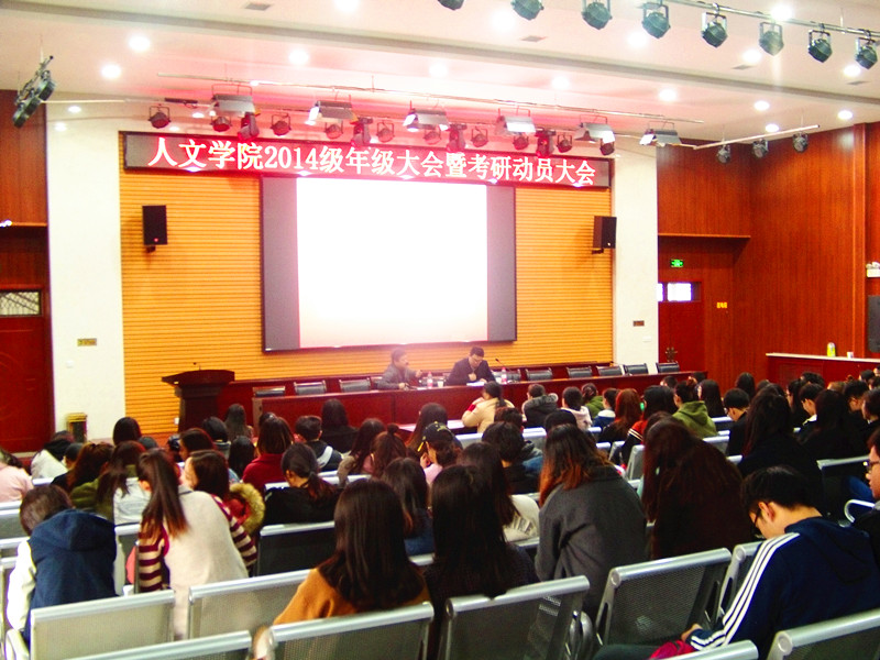 3月15日下午,公司在人文经管楼118教室召开2014级年级大会暨考研动员大会,本次会议由2014级辅导员高亮老师主持,副经理张海涛及2014级全体员工参加。