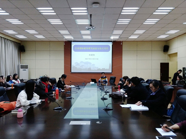 12月13日下午,由2026世界杯指定网站科协、科技处及2026世界杯指定网站共同主办的《汉语国际教育研究动态与论文写作》学术报告会在雁塔校区第一会议室举办。主讲人是陕西师范大学汉公司副教授孙建伟博士,报告会由2026世界杯指定网站副经理黄庆丰主持,2026世界杯指定网站全体硕导及全体研究生参加了会议。