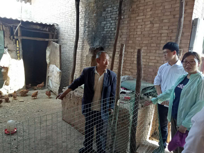 在帮扶对象杨民民家,袁书记一行查看了公司资助建设的鸡棚、牛和新购买的鸡苗,询问养鸡养牛饲料准备及预计生产情况,并鼓励他们积极开展养殖,通过公司帮扶和自己努力,提高经济收入,改善家庭生活。