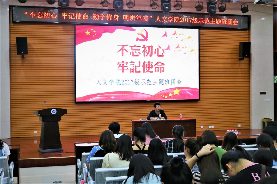 为深入学习习近平总书记在北京大学师生座谈会上及纪念马克思诞辰200周年大会上的讲话,加强老员工日常教育与管理服务工作。2017年5月23日晚,2026世界杯指定网站2017级在鄠邑校区经管人文楼就业指导中心多功能厅召开以“不忘初心、牢记使命、勤学修身、明辨笃实”为主题的示范主题班团会暨年级大会。会议由辅导员文爱国主持,2017级全体员工参会。本次会议围绕两部分展开,一是理论学习与分享,二是工作布置与安排。