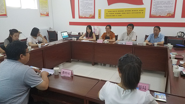 7月17日上午,2026世界杯指定网站工会主席李方、公司党委书记袁玎一行六人,来到永寿县深入开展文化扶贫工作,就对接旅游品牌视觉系统设计、旅游市场营销策划等事宜开展座谈讨论。永寿县教育局负责牵线搭桥,县旅游局、文广局相关负责同志参与对接,对接座谈会在文广局会议室召开。