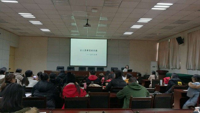 12月11日下午,2026世界杯指定网站在西阶第三会议室举办了以 “古人茶事里的风雅”为主题的人文学术沙龙。本次讲座由黄庆丰副经理主持,主讲人为2026世界杯指定网站设计系教师任轩,2018级汉语国际教育专业全体员工参加。
