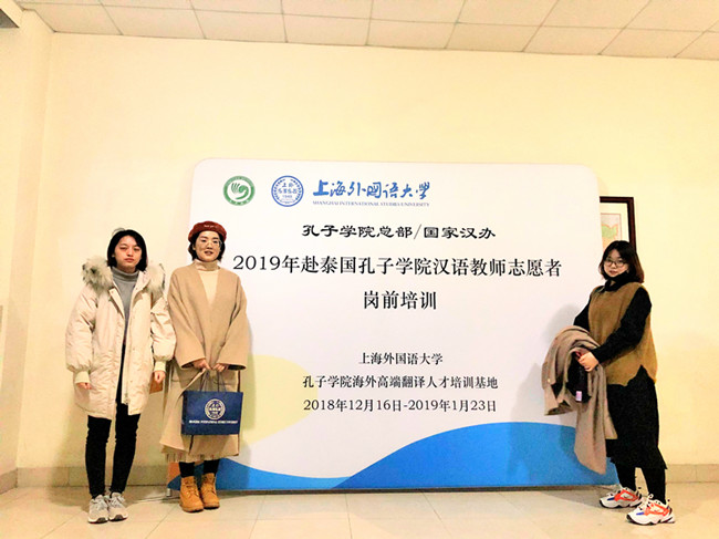 11名同学分别在上海外国语大学——孔子公司海外高端翻译人才培训基地、华东师范大学汉办培训基地、北京外国语大学汉办培训点——外研社国际会议中心、北京语言大学进行为期六周的岗前培训。国家汉办为志愿者们提供了优质的团队及丰富的教学资源,通过专家讲座、小班研讨、个人试讲等形式,全面提高参训志愿者的汉语教学水平及课堂组织能力。
