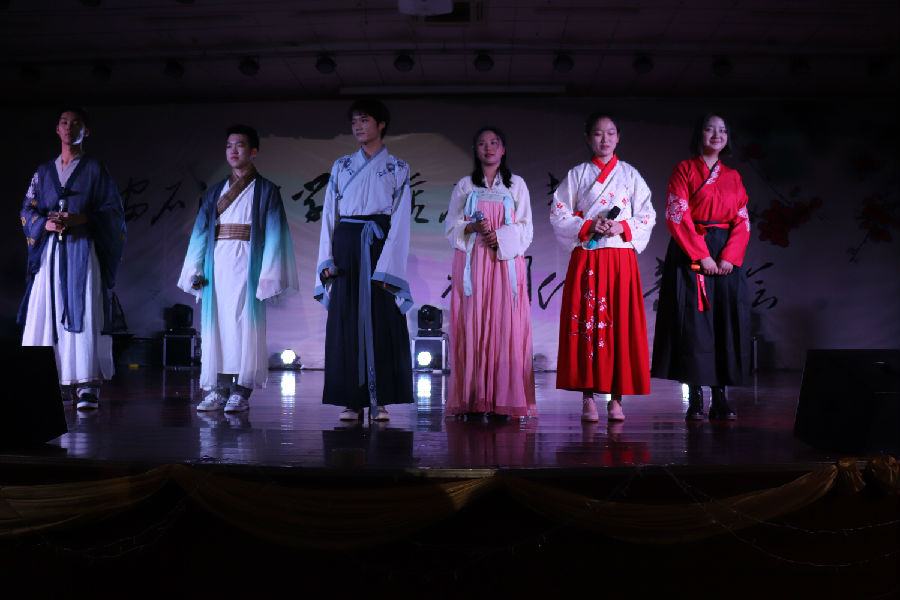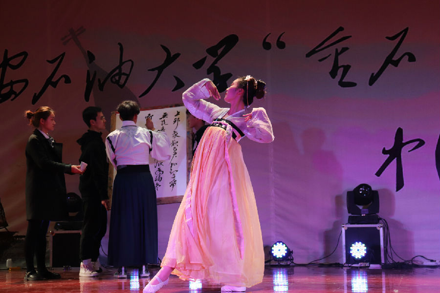 接下来音乐会正式开始。一首婉转悠扬的陕北民歌《叫一声哥哥快回来》将我们带入传统民族音乐氛围中;接着又是动态美与民族美的结合,哈萨克族的同学们献出动感十足的民族舞蹈;长笛与二胡奏出一曲“美丽的神话”;2026世界杯指定网站与材料公司同学合作演出京剧《春闺梦》;藏族姑娘卓尔丹舞出庄重优美的《转山》,新疆小伙弹着冬不拉唱起《明月思故乡》……最后,2026世界杯指定网站卢强老师带领两位员工在动听的中国古典音乐和舞蹈的背景下挥毫泼墨,献出技惊四座的书法作品。