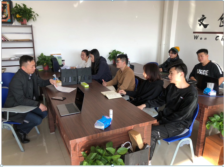 目前,“双带头人”教师党支部书记校园文化创新实践工作室名副其实, 有校院两级领导对工作室的大力支持,有史巍老师殷切指导,再加上工作室里员工党支部党员的示范作用,各项建设工作正在有条不紊的持续开展。在“老带新,传帮带”思想指导下,已有大四员工9人,大一、大二成员11人。在实践过程中,工作室已分别开展了“设计软件教学”、“设计经验分享会”、“扶贫包装大赛”、“党史分享会”等一系列活动和工作,并已初试牛刀设计制作了第一批校园文化创新实践成果。未来,员工们将和老师一起努力工作,立足教学创新实践,共创优秀校园文化。