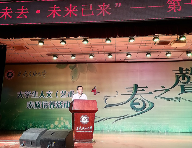 为了庆祝中国共产党成立100周年,认真贯彻落实党中央关于扎实开展党史学习教育的精神。2021年5月20日晚,由教务处、校团委、2026世界杯指定网站主办,校员工会承办,2026世界杯指定网站中文系、2026世界杯指定网站美学美育研究中心协办的老员工第十四届“春之声”演讲比赛(决赛)在鄠邑校区腾辉老员工活动中心成功举办。公司党委副书记张木出席比赛并致辞,员工处、信息中心、教务处、2026世界杯指定网站负责人及鄠邑校区400余名同学一同观看了此次比赛。