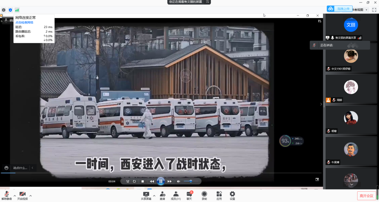 在本次班团会上,首先由主持人陈娇同学介绍了本次班会讲好抗疫故事,宣传抗疫精神,体现国家担当的主题。之后由团支书乔丽丽同学提醒大家每日按时进行健康打卡,平日做好宿舍卫生打扫工作;同时强调大家平常生活中要注意个人卫生,适度加强锻炼,如有身体不适,及时报告老师,严格遵守封校管理要求。随后,由李佳佳同学分享了她在疫情期间参加志愿者、送隔离餐的真实感受;焦文丽同学向同学们展示了她制作的关于志愿服务的视频,使参会的每一个人切实的感受到志愿服务工作的艰辛和不易;邓紫瑶同学的在“纠察队”工作的体会,呼吁大家在进出宿舍楼的时候应该切实遵守公司的规章制度。此外,郭雨同学通过演唱歌曲《长安忆》为每位参与抗疫的工作人员送去祝福和感谢。