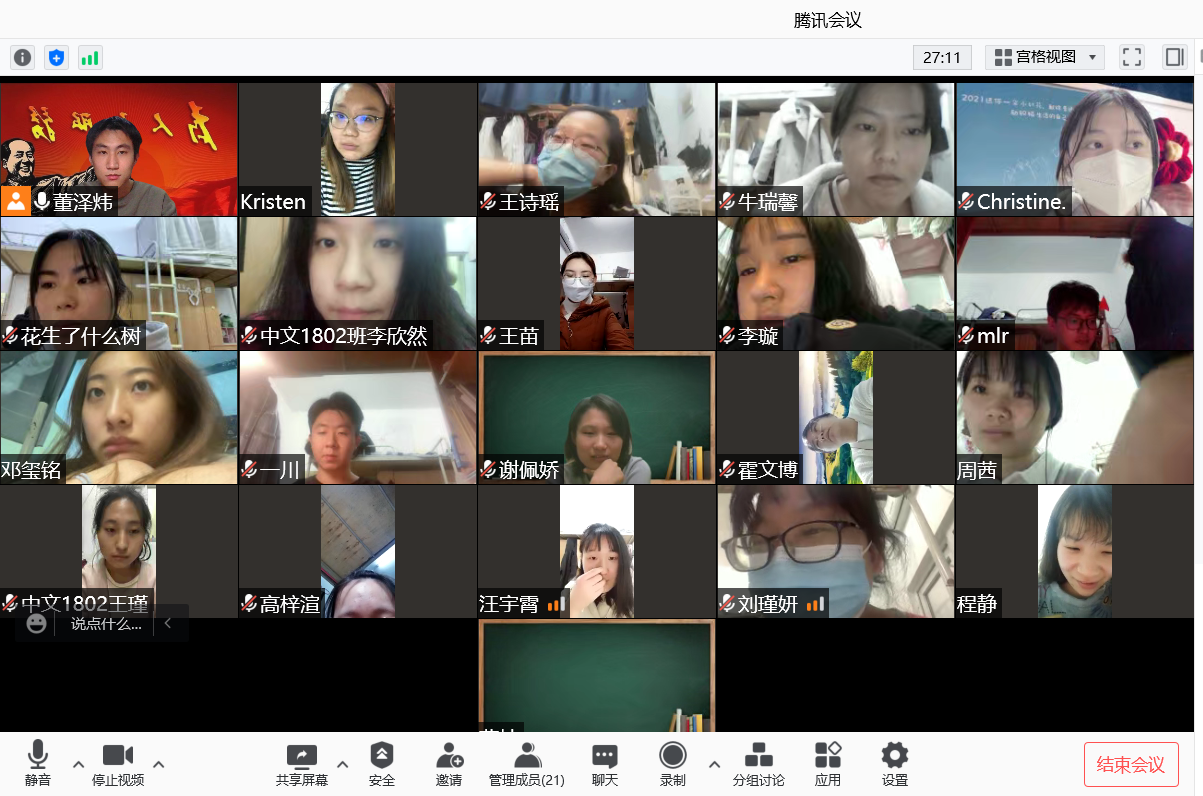 此次主题班会,为封闭在公司、隔离在西安或已经到家的同学们提供了一个交流的平台,将发言机会交到每一位亲身经历疫情生活的同学们手里,同时也为员工和老师搭建了一个沟通的桥梁,拉近了师生之间的情感距离。同学们也从他人的发言中感受到了防疫工作者和志愿者的辛苦付出,培养了感恩之心,从而激励自身勇敢面对困难,以良好的心态和积极乐观的精神度过这段艰难的时期,大家相互支持、相互鼓励,一定会战胜疫情。