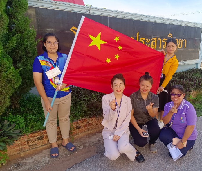 泰国碧差汶府维塔亚努姑娜丽中学汉语教师志愿者21级研究生邓蕾同学(下图)祝中国母亲生日快乐,国泰民安,繁荣昌盛!