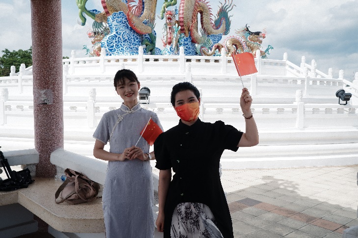 泰国北榄坡同德公司汉语教师志愿者21级研究生李姮、焦兵阳(下图)同学遥祝亲爱的祖国:海晏河清,万象升平!生日快乐,国泰民安,风调雨顺!