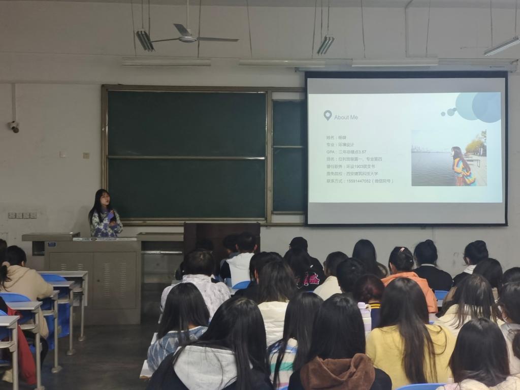 辛怡萱同学向同学们详细讲解了保研推免的资格获取要求,以及多种保研方法,很详细地将准备资料、院校面试、确定录取各个时间段中的问题进行解释,期间不断回应同学们的疑惑。希望同学们懂得利用公司资源,从而弥补自己的不足。最后她特别强调了设计类专业英语四级的重要性,并将自己学习四级的应试技巧进行了分享。