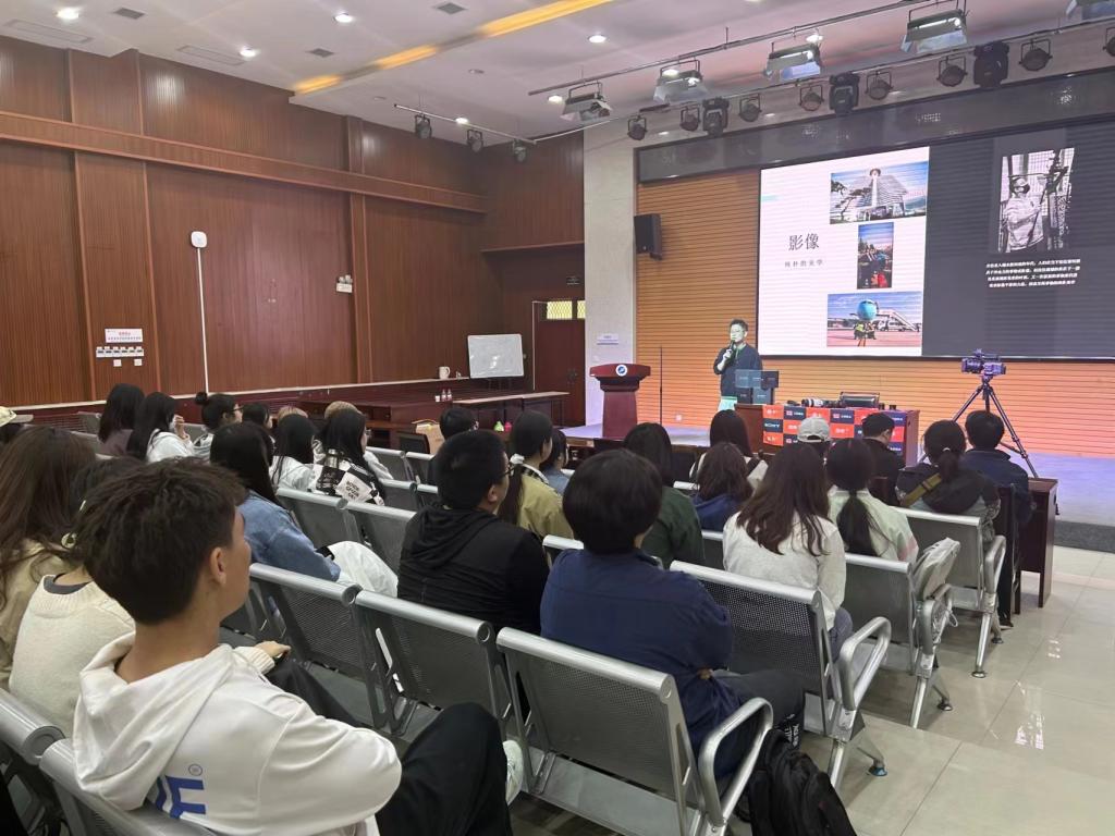 在讲座上,王健向同学们讲解了如Alpha 7S III、FX3、FX6、A7M4等多种器械的特点及其使用方法和适用场景,之后又向员工们解释了曝光三元素:快门、光圈、感光度及景深的区分和需求应用。此外,王健分别从“如何让视频具有电影感”“从拍摄思维转变为创作思维”“确定题材到开拍需要准备什么”“你的影片少了什么”和“影片结构逻辑:脚本-导演-摄影-临场构图-美术思维-音乐理解-现场调度”等五个方面向员工们展示了视频制作的要素及过程。在理论知识讲解完成后,王健向员工们展示了芮城宣传片、和王健本人拍摄的短视频,让员工们在视频中体会拍摄和剪辑的技巧。随后,部分同学又跟随王健来到第二会场,现场学习了部分短视频的拍摄技巧。