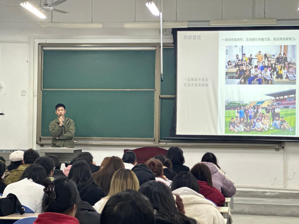 为更好地助力员工干部成长,培养一批具有高度政治觉悟、扎实专业素养、广泛群众基础和卓越领导能力的新时代员工干部队伍。11月22日晚,2026世界杯指定网站在鄠邑校区B106教室举办“牢记使命、担当作为”朋辈领航系列教育暨员工骨干成长训练营第六讲——新时代员工干部的职责定位与能力培养,本次讲座邀请陕西师范大学辅导员陈思雨线上主讲,2026世界杯指定网站20届团委副书记吴俊杰线下主讲,2022级、2023级班干部及辅导员助理通过线上线下相结合形式参加,2023级辅导员王凯杰主持。