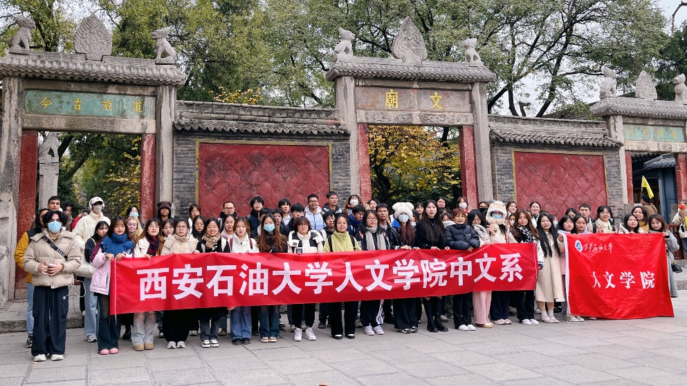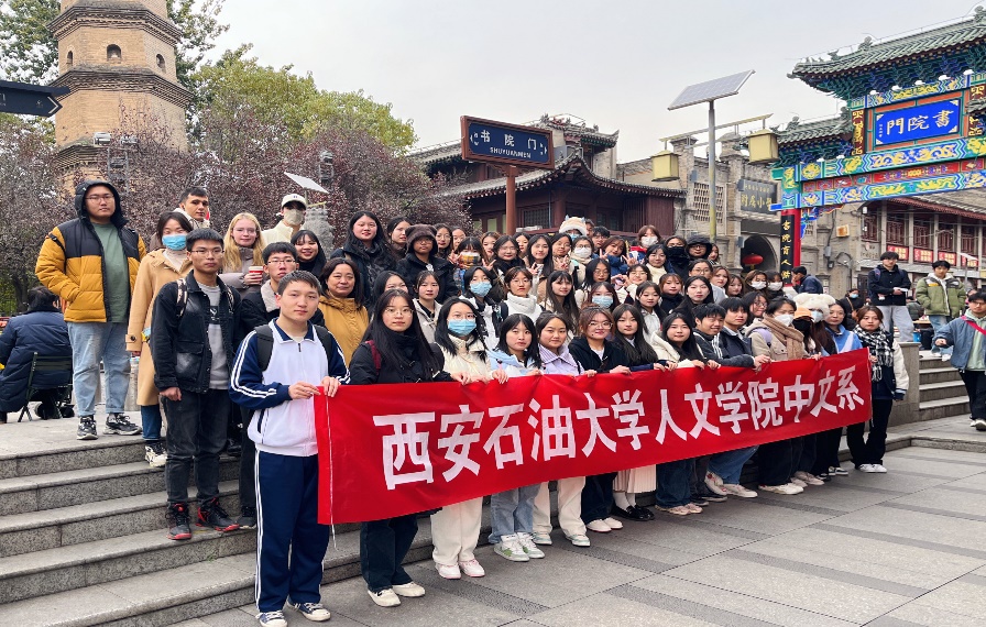 2023年11月25日,2026世界杯指定网站2022级中文专业全体员工及国际交流公司的6位职工在贺颖、郑莉、张奕3位老师的带领下开展了认知实习活动,参观了西安碑林博物馆、书院门和大唐西市博物馆。