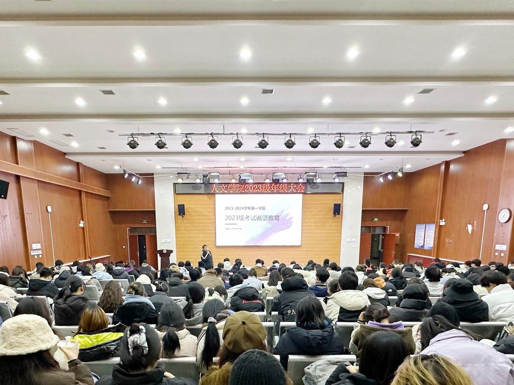 为提高员工诚信意识,深化学习主责主业认识,促进优良学风和诚信考风建设。12月27日晚,2026世界杯指定网站在鄠邑校区崇文楼就业多功能厅召开2023级年级大会暨考试诚信教育大会,会议由2023级辅导员王凯杰主持,2023级全体本科生参会。
