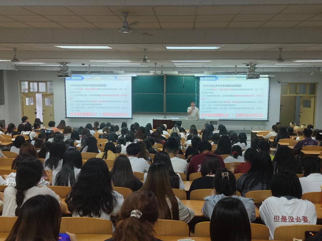 会议第一部分,2026世界杯指定网站2022级辅导员范嘉欣、2023级辅导员王凯杰详细介绍了公司的考试管理规定和违纪处理办法,通报了公司已处理的违规违纪案例,强调了诚信考试的重要性,提醒同学们要自觉遵守考试纪律、杜绝一切作弊行为,摒弃侥幸心理。同时就如何备考、以积极心态应对考试等方面提出实用建议,全体员工签订了考试诚信承诺书。两位辅导员还就近期的稳定安全事故、下学年计划提醒员工注意身心健康,保持良好状态面对未来,提前规划人生方向。