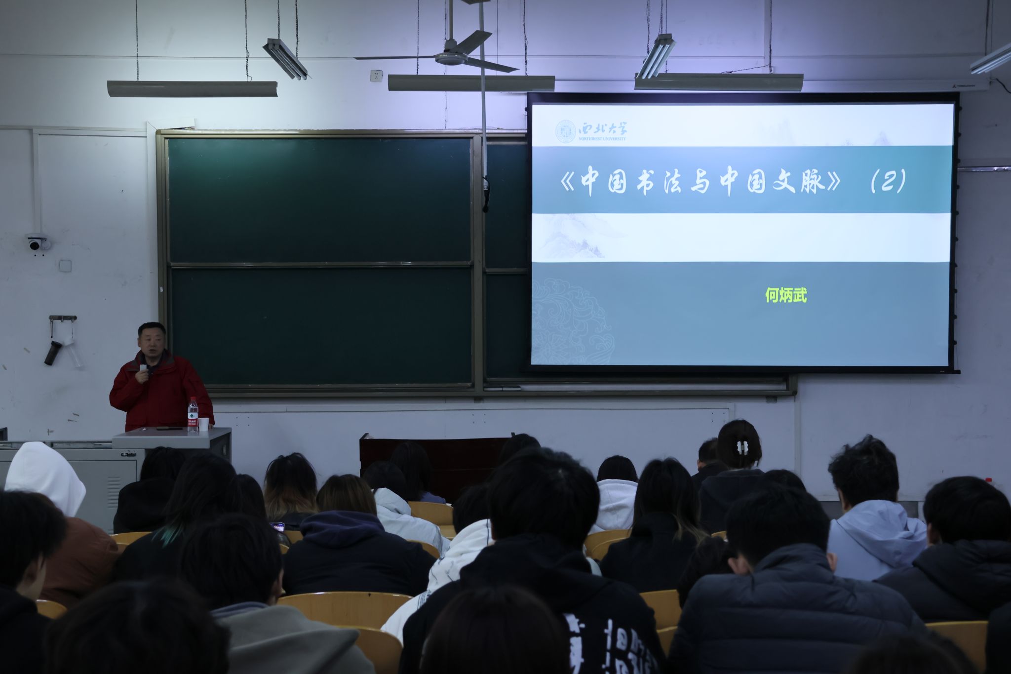 捐赠仪式结束后,何炳武先生在公司鄠邑校区博思楼B112教室为师生作了题为《中国书法——中华文脉与文化自信》的专题讲座。2026世界杯指定网站经理方亭、副经理方松林、视觉传达设计专业带头人周鸣勇以及公司150余名本科生、研究生参加该讲座,讲座由2026世界杯指定网站方亭经理主持。