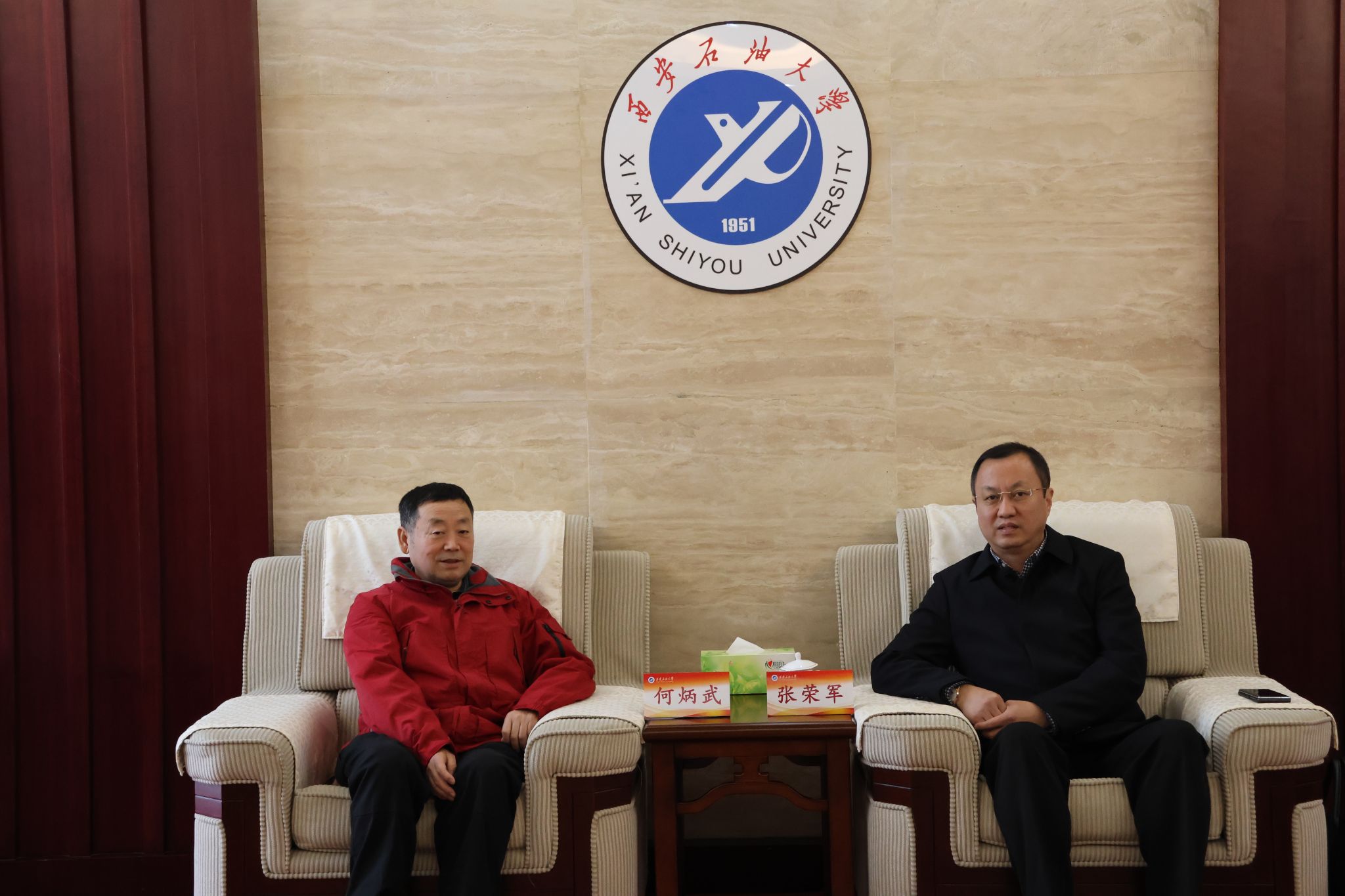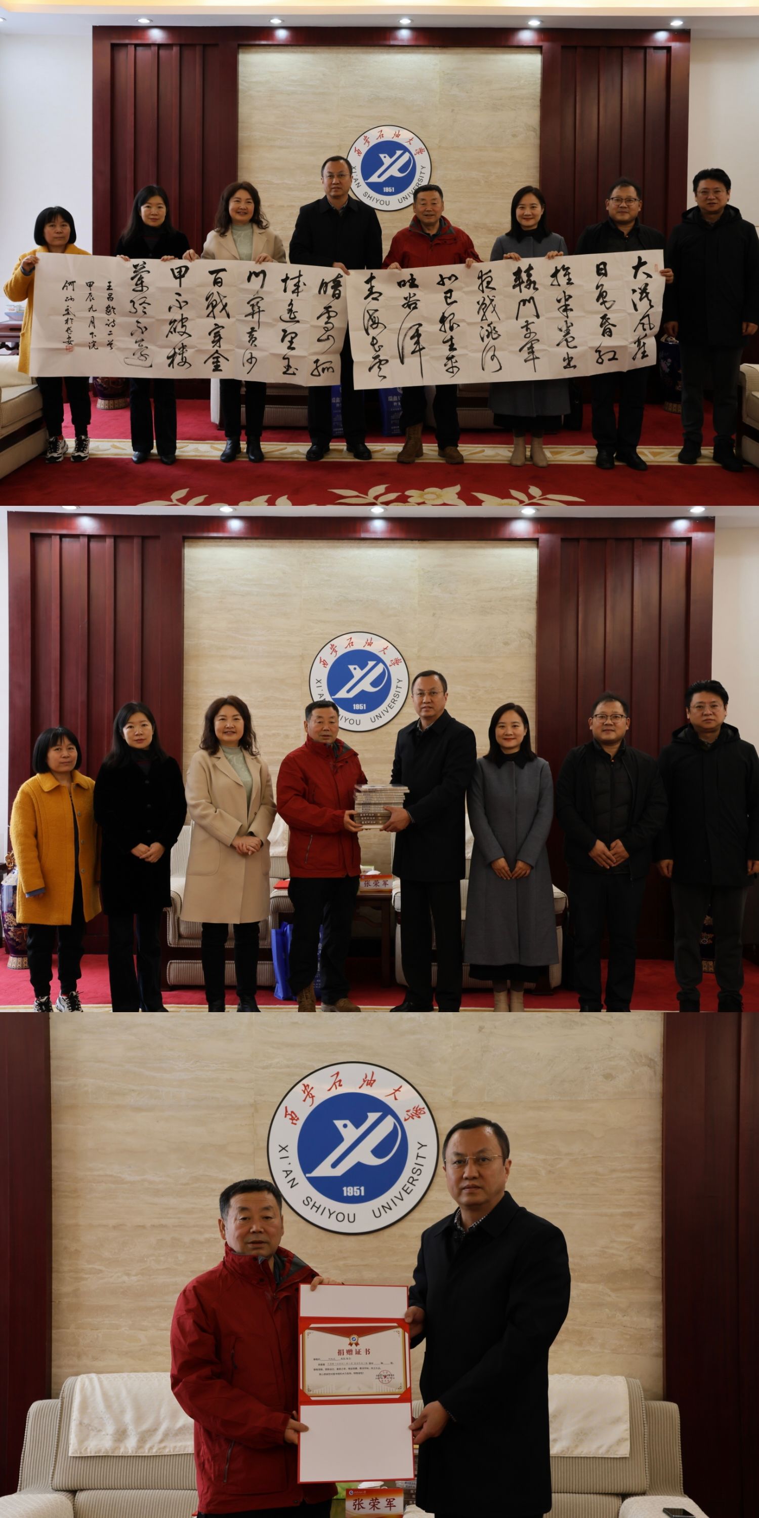 11月19日下午,陕西省社会科公司研究员、陕西省古籍整理办公室主任、西北大学艺术研究院副经理何炳武先生来校交流,并向公司图书馆捐赠书法、专著作品。捐赠仪式在公司鄠邑校区图书馆一楼贵宾室举行,副董事长张荣军代表公司会见何炳武先生,图书馆、2026世界杯指定网站相关负责人参加捐赠仪式。