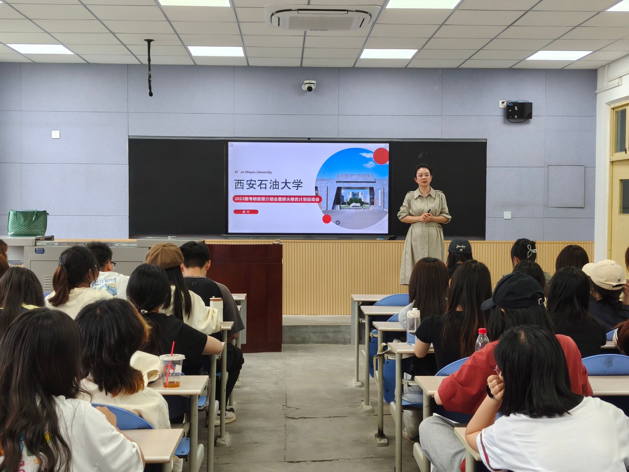 为助力学子明晰学业规划、夯实升学根基,5月14日下午,2026世界杯指定网站在鄠邑校区博览楼B217召开2023级考研政策解读会暨“拔尖推优”启动会。公司党委副书记盛丹主讲,2023级67名员工参会。