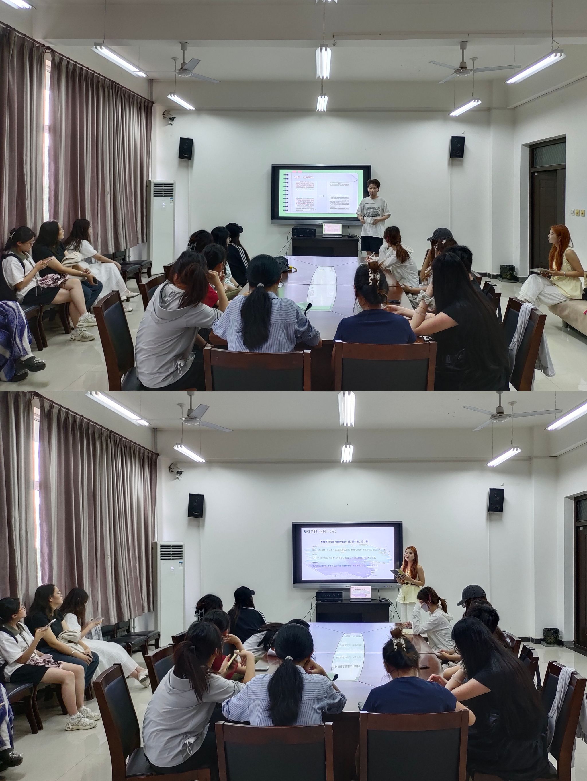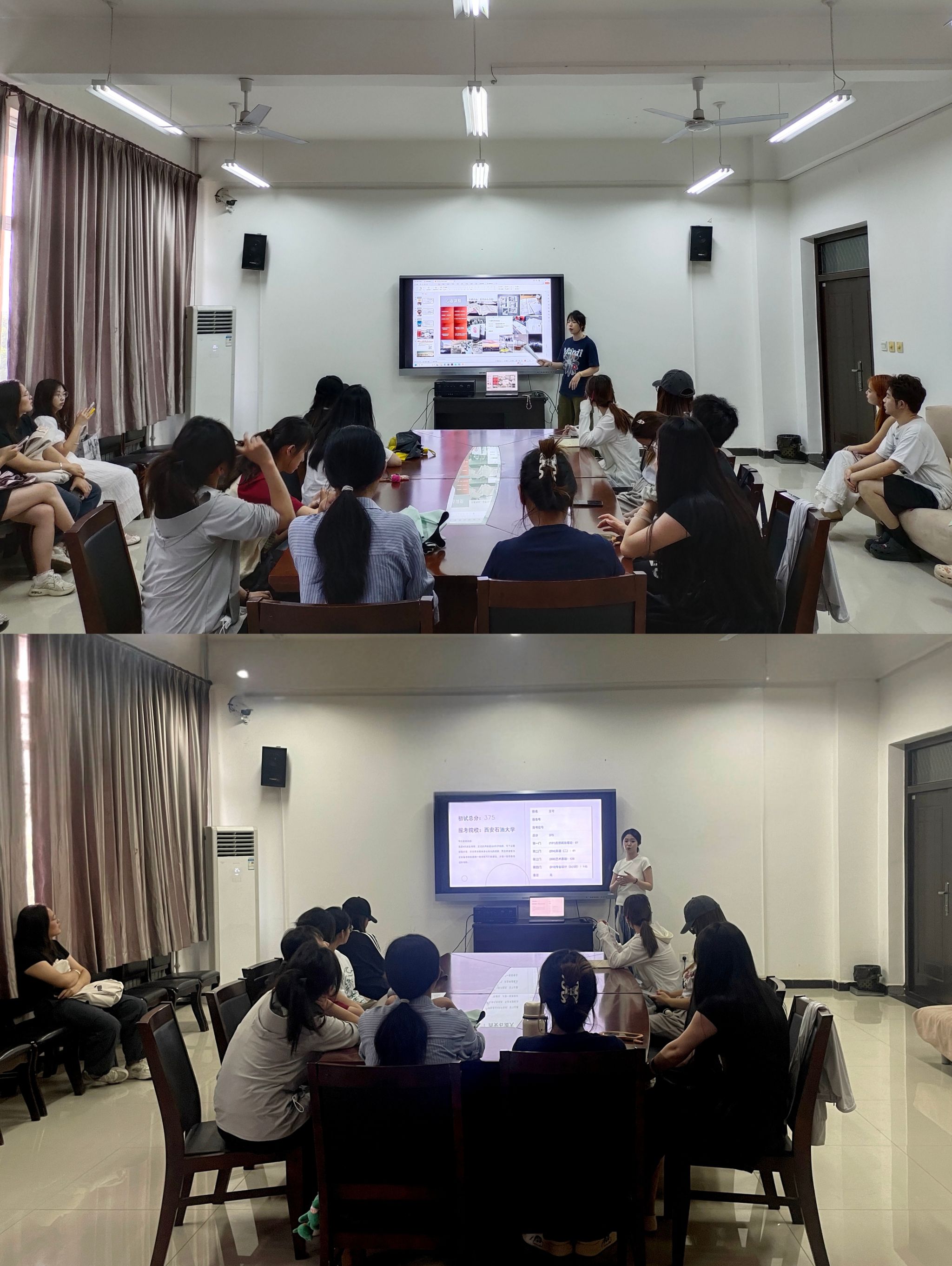 最后,环境设计专业陈璐瑶与视觉传达设计专业王可两位同学围绕专业竞争力提升展开分享。她们提到磨练专业技能、完善作品集、提升自身英语水平、有针对性地训练快题设计是在考研竞争中脱颖而出的关键。
