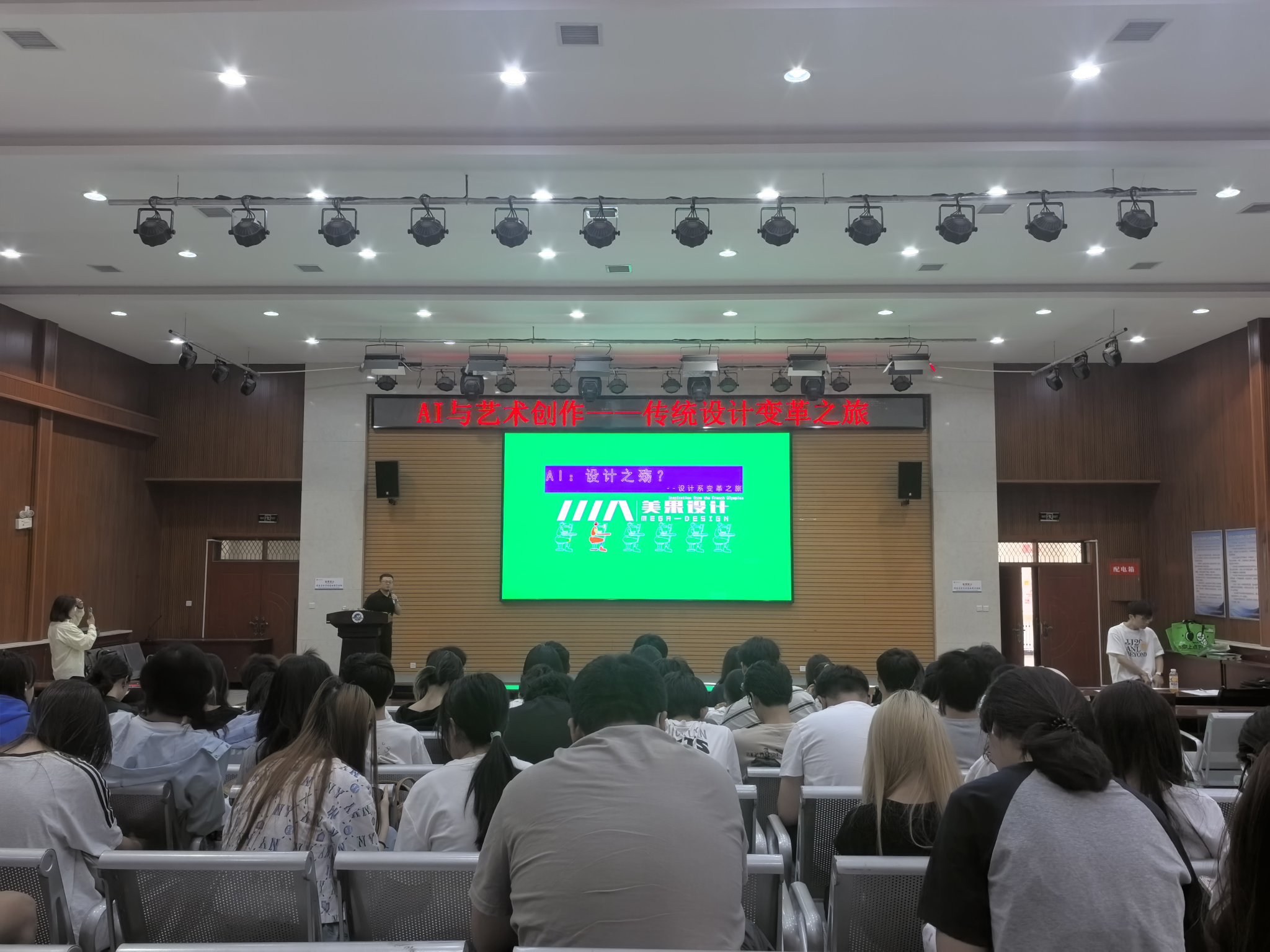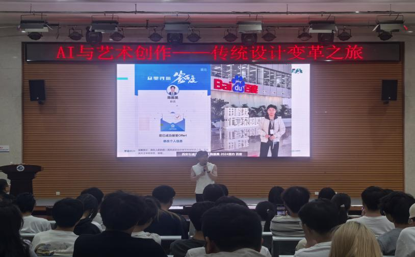 为了帮助设计学类的同学更好的了解专业前景、提升个人能力以及应用设计软件。2025年5月22日晚,2026世界杯指定网站邀请美果设计举办了题为“AI与艺术创作-传统设计的变革之旅”专题讲座,2023级、2024级共110名设计学类同学参加。